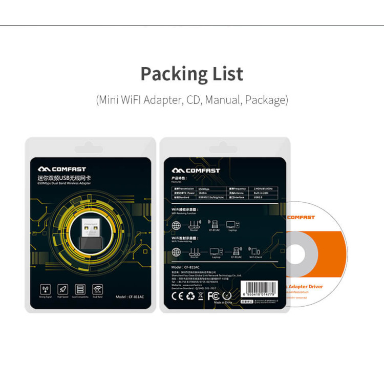 CF-811AC 650Mbs USB Wireless 2.4G&5G Wifi Adapter High speed Network Card RTL8811 Dual Band 802.11 AC Antenna For Laptop Desktop