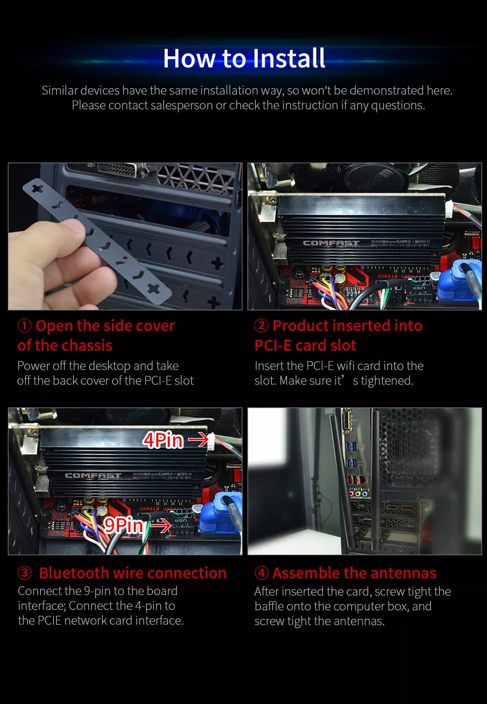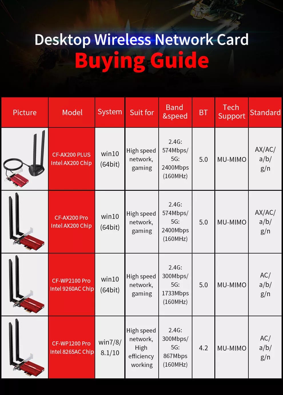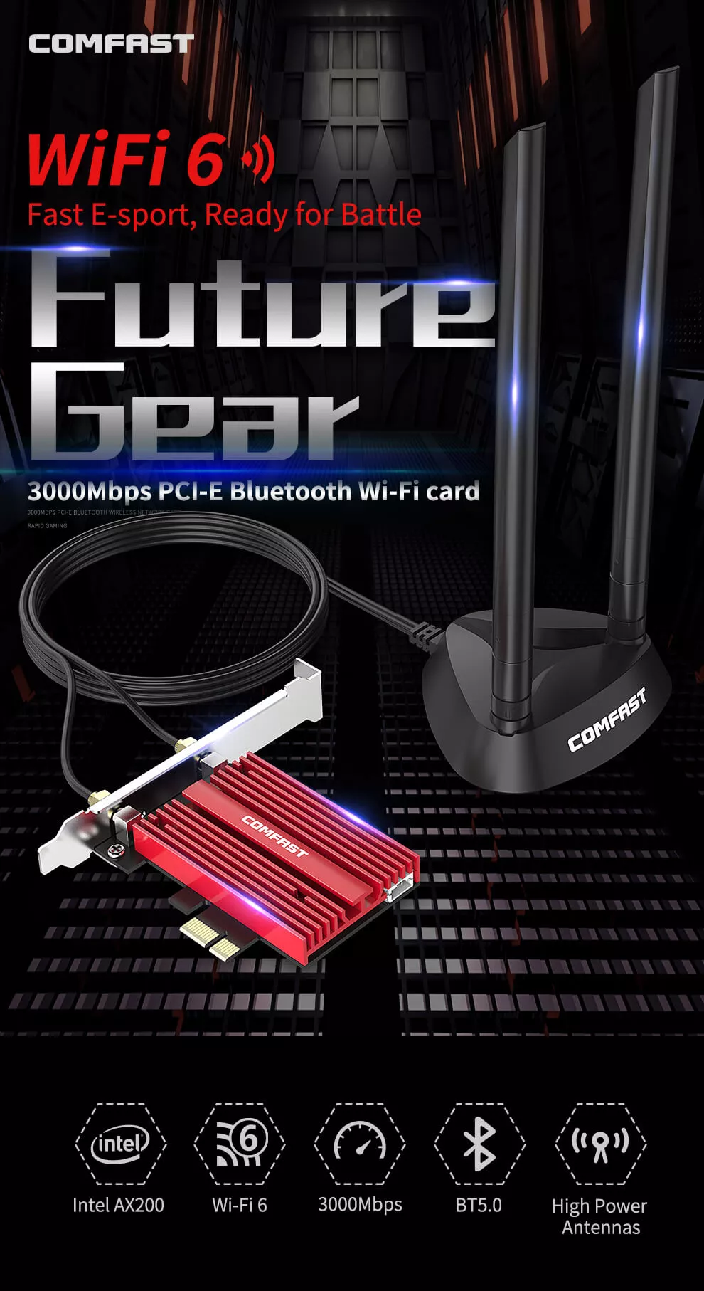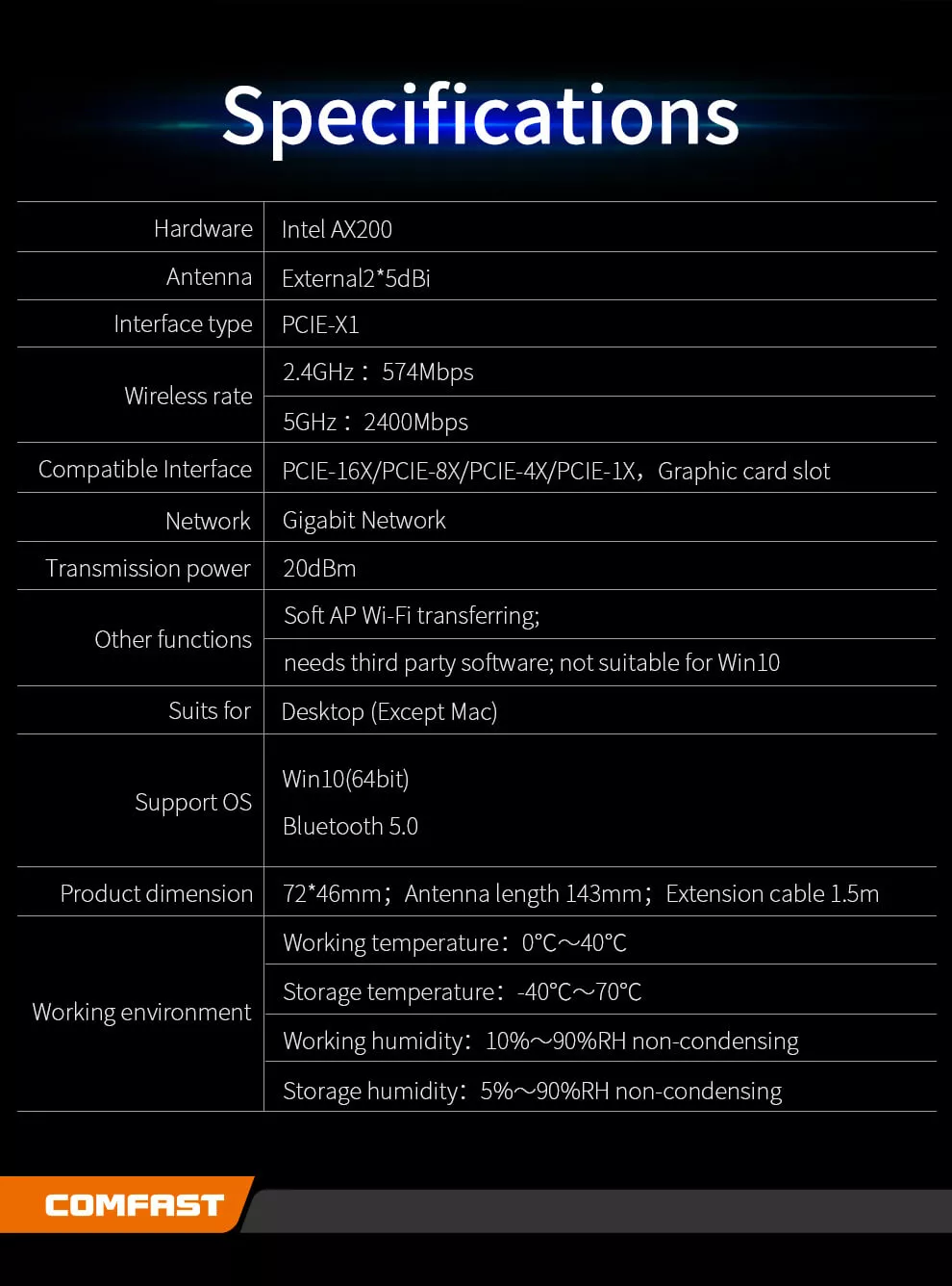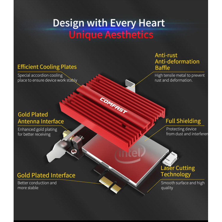 Comfast 3000Mbps Dual band Wifi 6 Intel AX200 PCI-E 1X Network Card