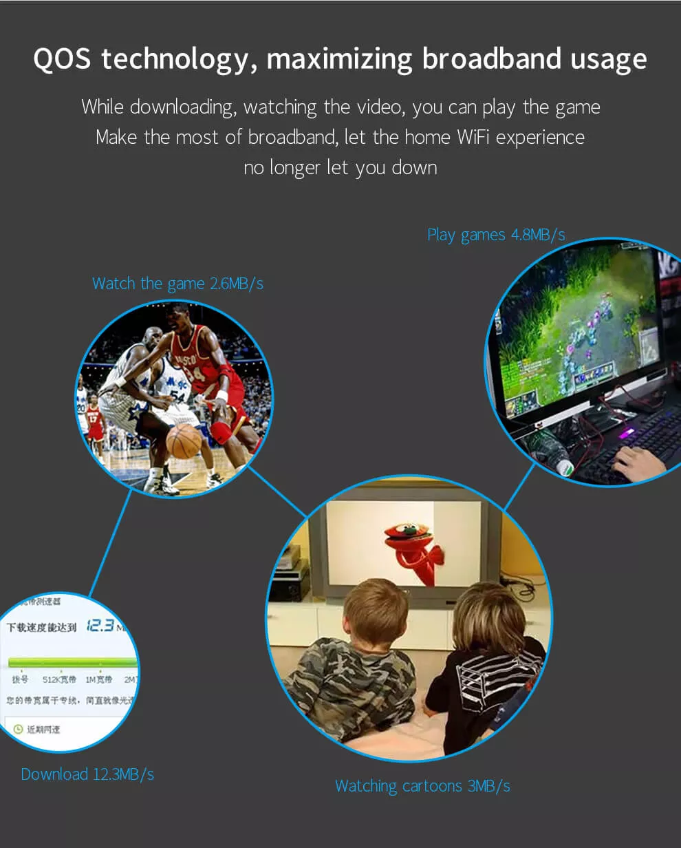 - Dual-band wifi faster than single frequency routing:2.4Ghz transmission is far,and the wall if fierce.5.8Ghz interference is small,the rate is fast,and dual-frequencycooperation brings extreme speed surfing