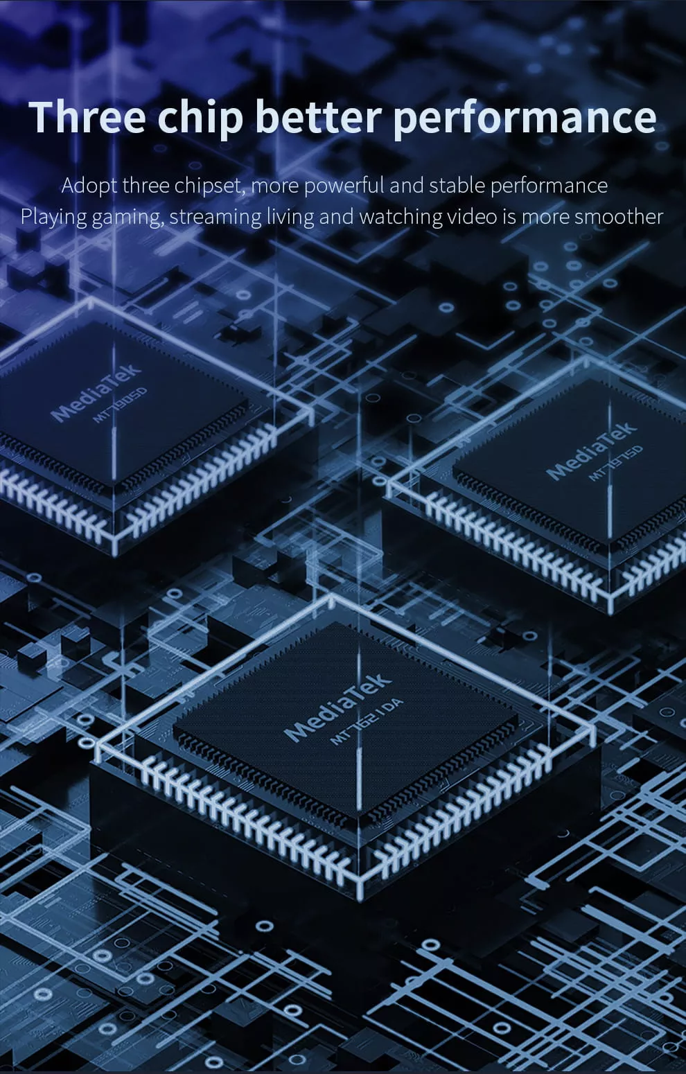2.Chipset:MT7621A+MT7905D+MT7975D