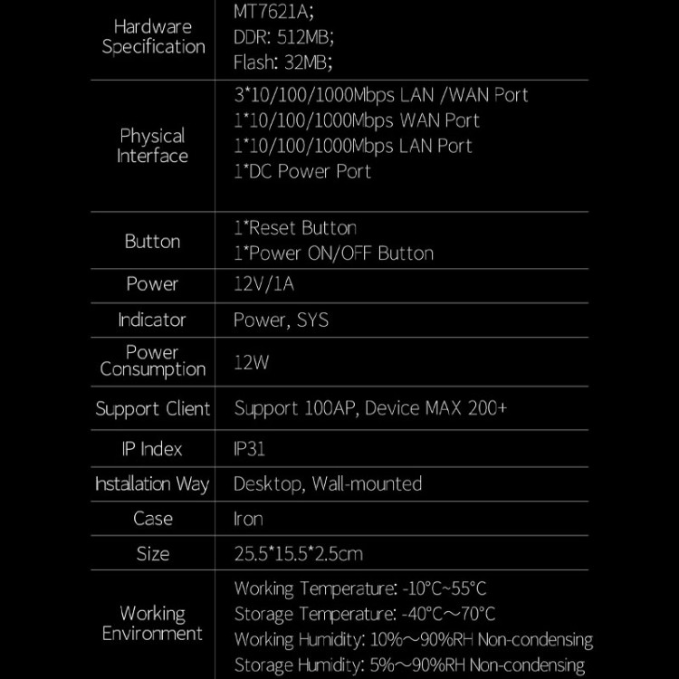 | AC Router Lan Port: 1*10/100/1000 Lan Port |