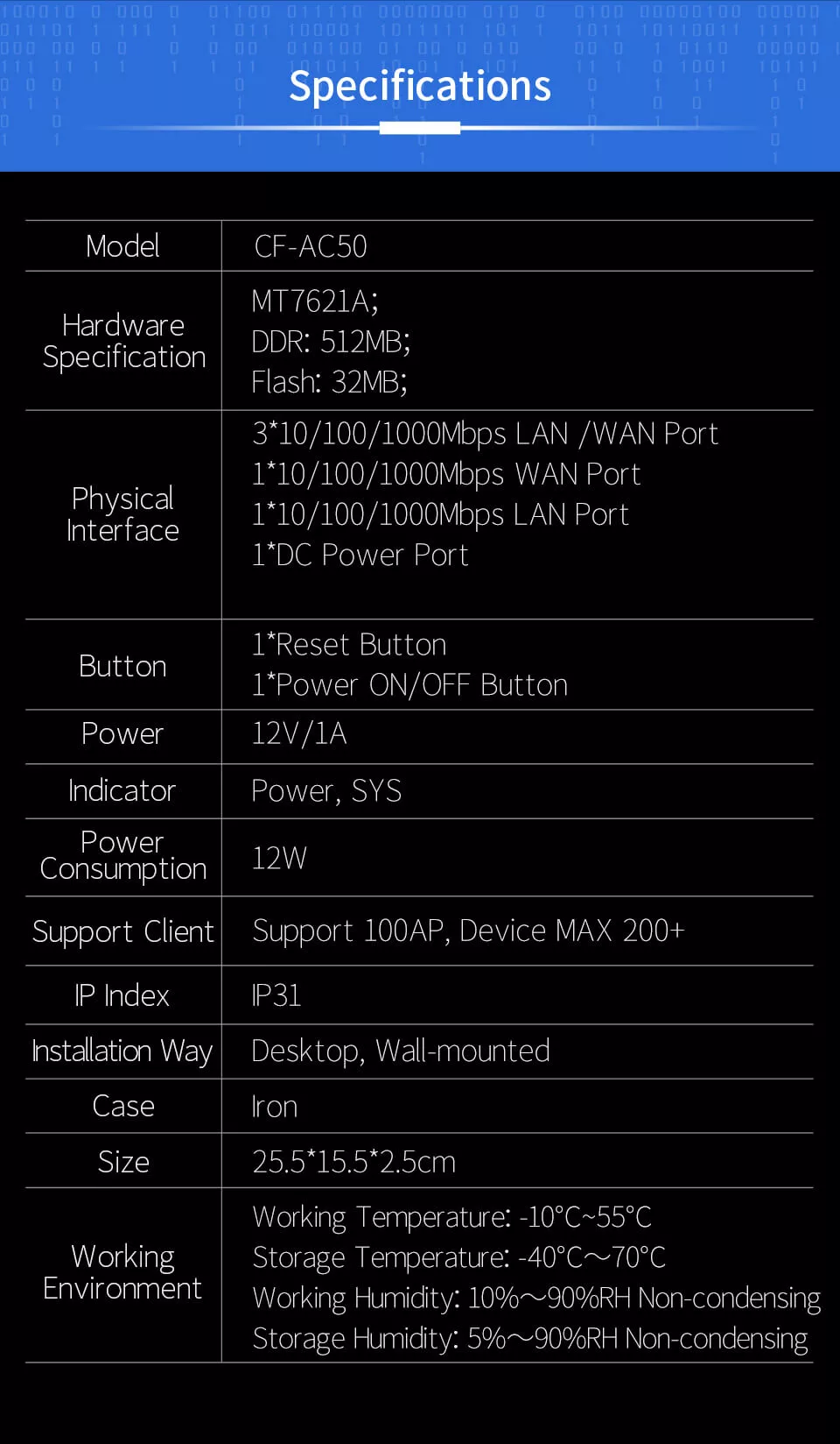 | WAN Ports: 1 x10/100/1000Mbps |