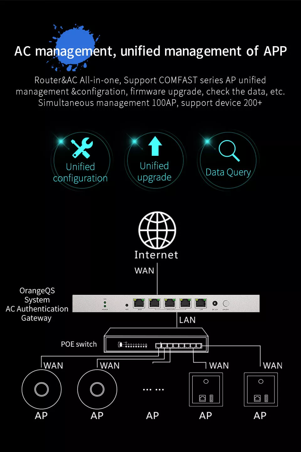 | AC Router Function 1: Support 100pcs AP |