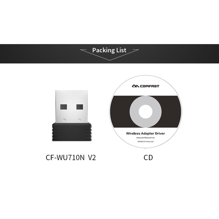 COMFAST Mini Wifi Adapter Usb Wifi Antenna MTK7601 Chip 150Mbps 2.4G Desktop PC Receiver Soft AP Function Black CF-WU710N-V2