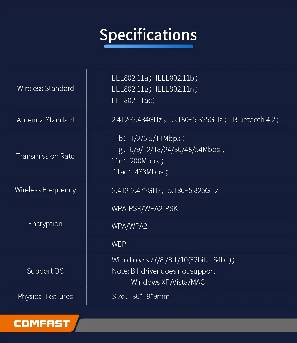 Supported standards and protocols: IEEE 802.11n, IEEE 802.11g, IEEE 802.11b, IEEE 802.11ac