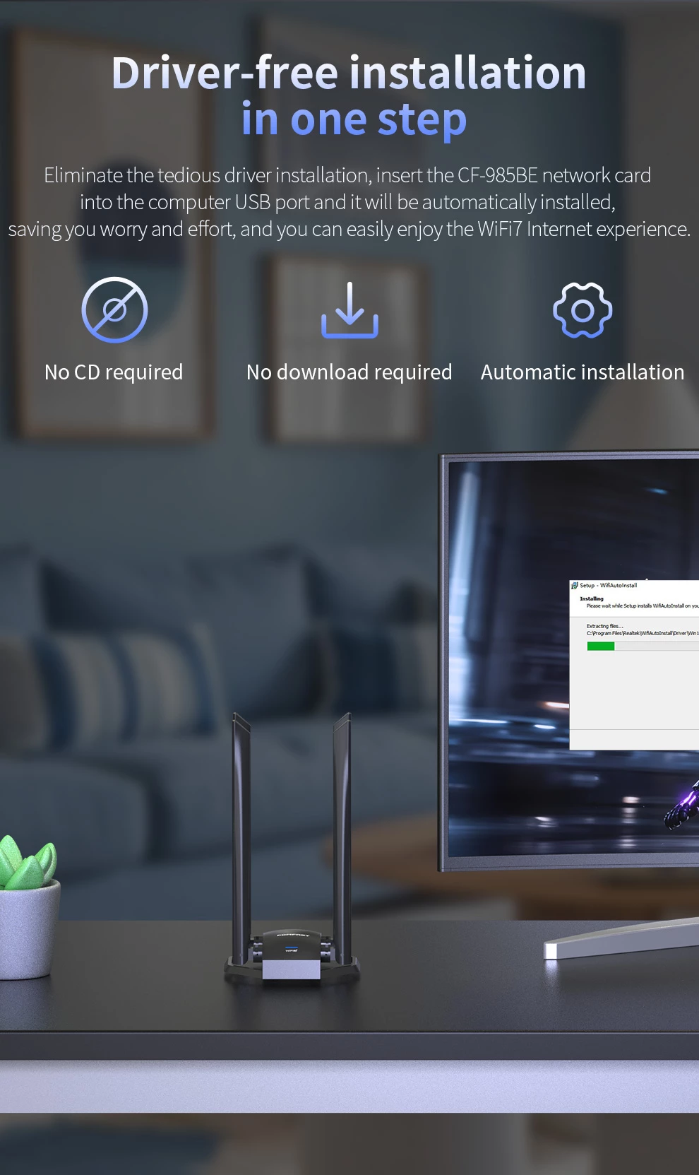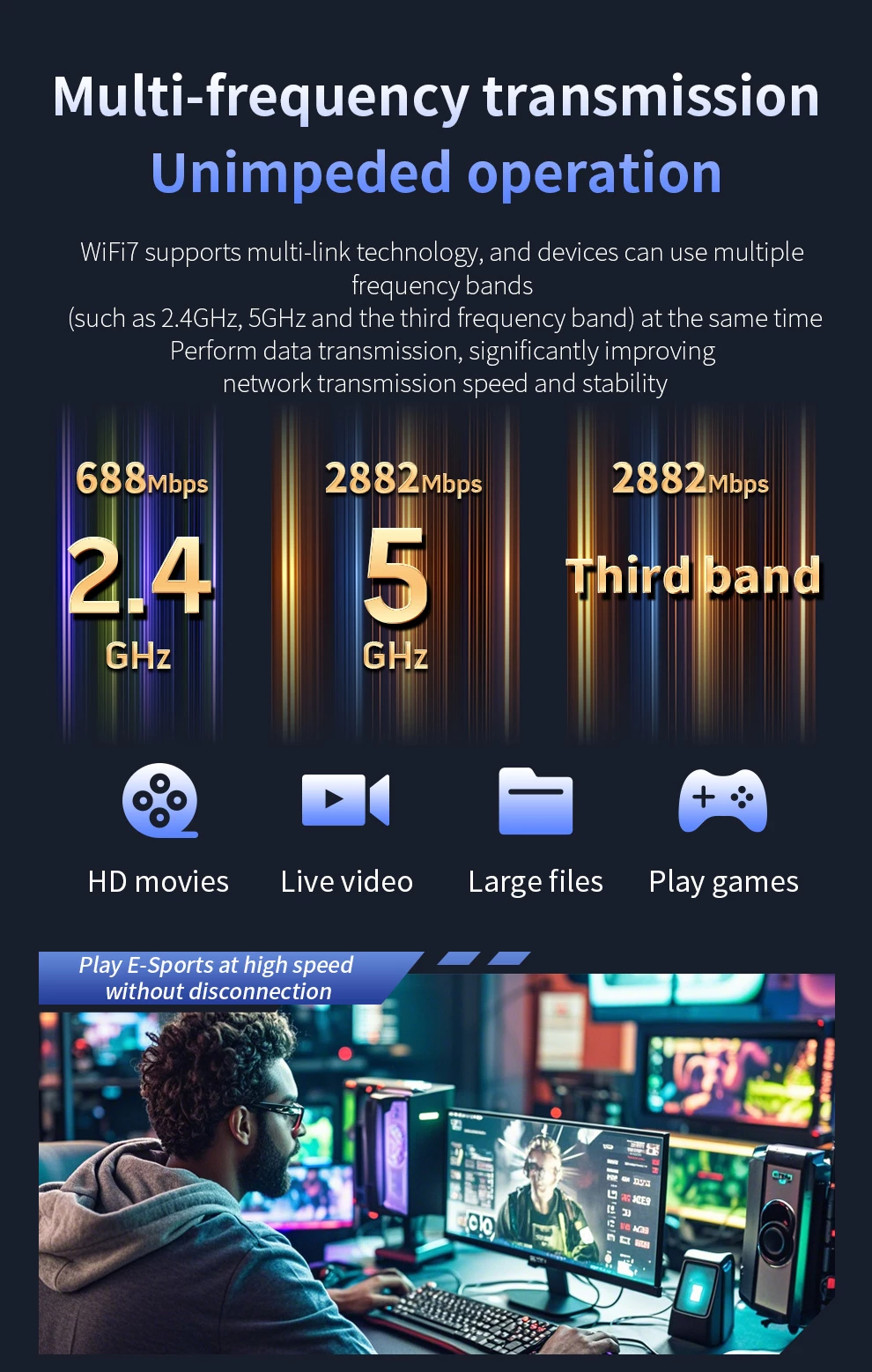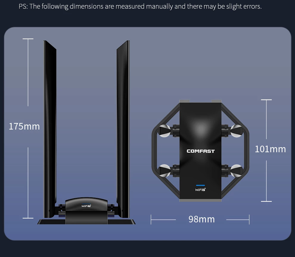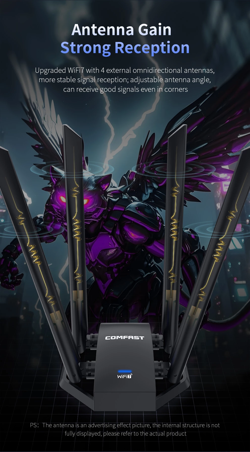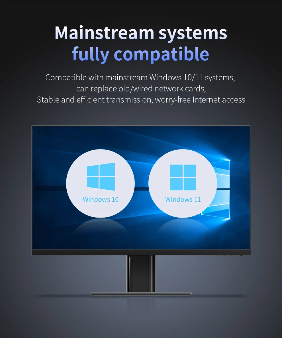 Tri- Band 6452Mbps ; Driver- Free ; High gain Antennas ; Extension code Design