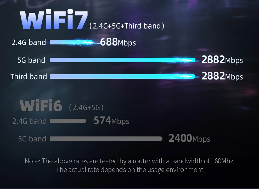 Wireless Rate:2.4GHz :688Mbps;5.8GHz:2882Mbps;6GHz :2882Mbps